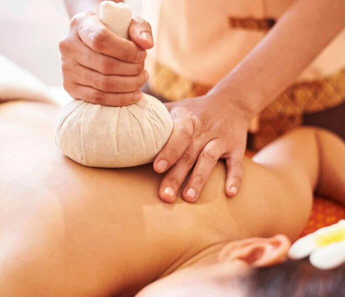 the use of heated compresses, made of a variety of aromatic herbs, which are applied to the body to relieve pain, reduce inflammation, and promote relaxation.