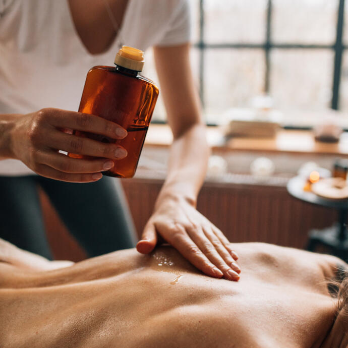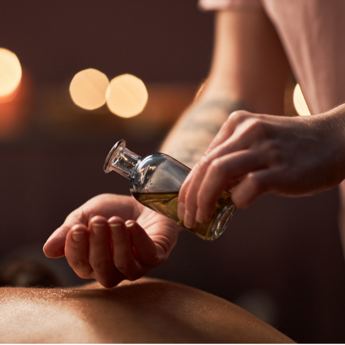The massage involves alternating between gentle and harder pressure while using a particular blend of essential oils. The essential oils are diluted before use and are applied along with lotion during the massage.