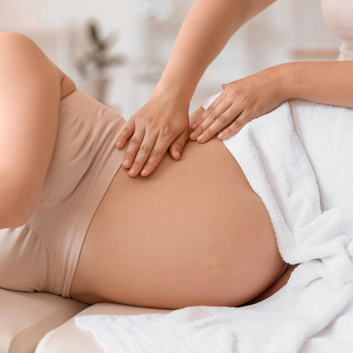 a specially adapted gentle and soothing massage tailored specifically for the mother-to-be.